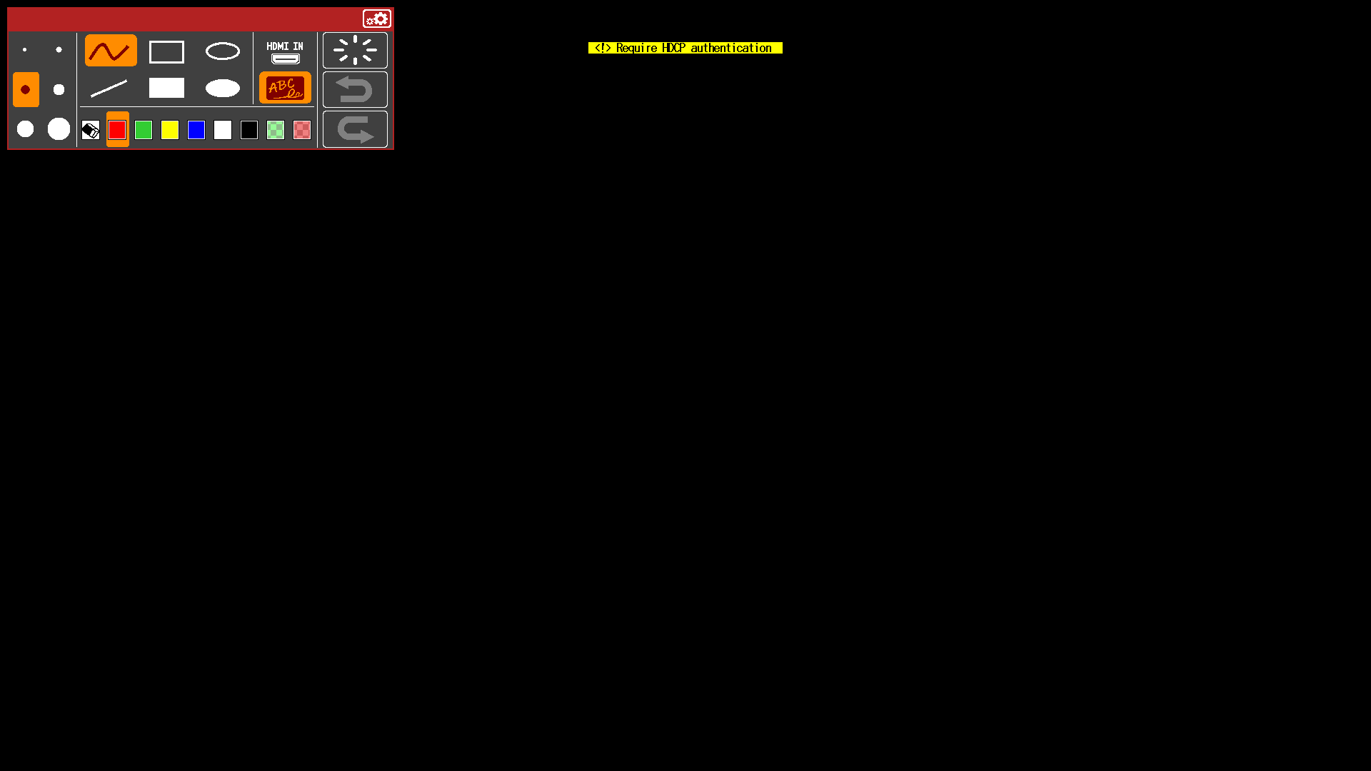 (ただし、ブルーレイ機器等のコンテンツが保護されている映像はHDCP認証が必要となるため次のように表示され、入力映像は表示されません。)