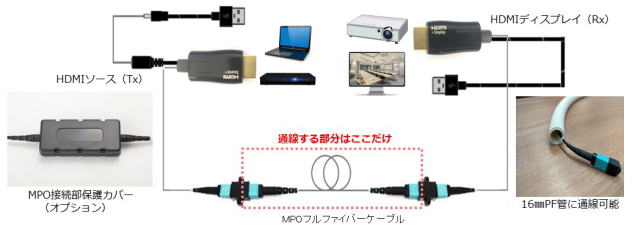 - MPOフルファイバーケーブルで 300mまで伝送可能