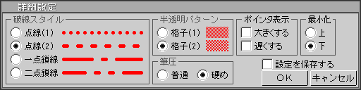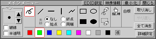 パレットメニュー表示で操作も簡単付属のマウスや別売のペンタブレットを使用して自由曲線、直線、図形(四角、円)などを自在に描画することができます。ツールパレットで線径、カラ-設定など用途に応じて、詳細な設定を行うことができます。![]() ![]()