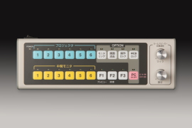ボリューム付き操作ユニット OPU-1THVL ルームスピーカと音声アンプ設備がある教室に最適な音量コントロール付き操作ユニットをご用意しています。配信映像音声とマイク音声の音量を調整することができます。 外形寸法:W226mm×D75mm×H29mm 重量:0.6Kg以下 電源:映像マスターユニットから供給 |