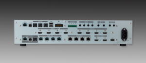 | 出力端子 | HDMI×4 音声(ステレオ3.5Φ)×2 ※マイク音はミキシングして出力 中間モニタ配信用LANコネクタ×4 制御用LANコネクタ×4 |