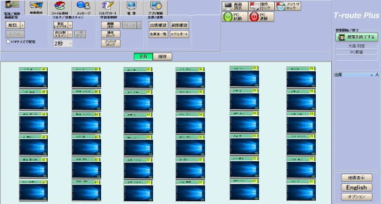 | デジタル対応の中間モニタ配信システムT-route2000と機能連携して、動作することが可能です。 T-routePlusからは中間モニタシステムの配信ソース切替 T-route2000の専用操作ユニットからは、モニタリング、操作ロック、ブラックアウト、ブラウザロック、学習者PC電源の ON/OFFなどをワンボタンで実行することができます。 ![]() |