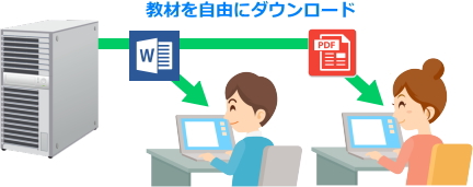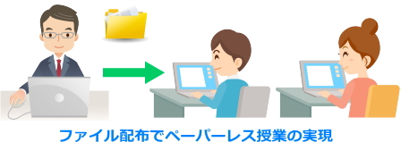 | <ファイル/フォルダ配布・回収> 学習者PCへファイルやフォルダを配布、回収することができます。回収ファイルは、次回の授業で再配布することも可能です。 ![]() |
