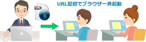 | <URL配信> 先生から学習者へURLを配信し、指定したサイトを自動的に表示させることができます。 ![]() |