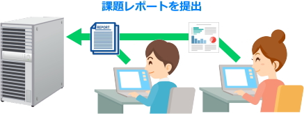 | <レポート管理> 学習者から先生へ課題レポートを提出することができます。 ![]() |