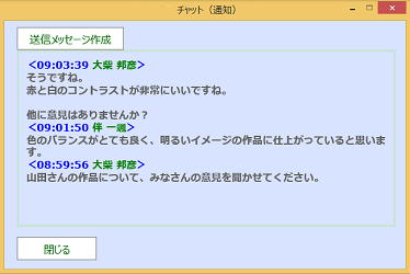 先生と学習者または学習者同士でメッセージ交換やグループディスカッションを行うことができます。授業中に交換したメッセージデータは先生、学習者ともダウンロードすることができます。![]() |