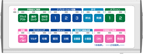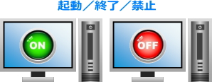 | <学習者PC電源制御> 先生PCからの制御で学習者PCの電源ON、OFF、再起動、ログオン、ログオフを行うことができます。 ![]() |