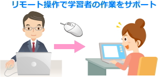 | <リモート操作> 先生PCのキーボード・マウスで学習者PCをリモート操作することができます。 ![]() |