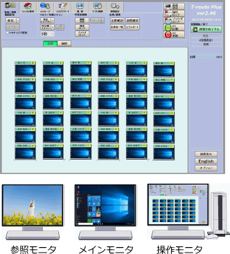 | <モニタリング/オートスキャン> 教室レイアウトに合わせた表示で学習者の状況を確認することができます。オートスキャンはシングル、4画面など、用途に応じたサイズで、巡回表示することができます。 ![]() |